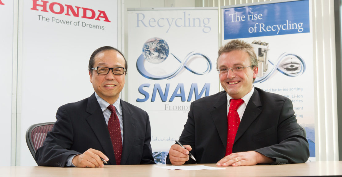 Wszystkie punkty zbiórki akumulatorów należące do Hondy będą ściśle współpracować z firmą SNAM, co ma zapewnić recykling baterii niklowo-metalowo-wodorkowych oraz litowo-jonowych zgodny z europejskimi normami ekologicznymi. Zbiórkę i recykling przemysłowych akumulatorów w Europie regulują przepisy dyrektywy UE w sprawie baterii i akumulatorów (2006/66/EC), która zyskała moc prawną 26 września 2006 roku i która zobowiązywała Kraje Członkowskie do dostosowania wewnętrznego prawa do przepisów narzucanych przez ww. dyrektywę w terminie dwóch lat od jej wprowadzenia. Choć treść samej dyrektywy nie narzuca minimalnego procentowego progu zbiórki akumulatorów przemysłowych, wydajność recyklingowa powinna wynosić minimum 50% masy akumulatorów wprowadzonych do obrotu.