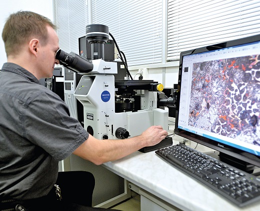 Kompozycja kolorystyczna złożona z różnych odcieni różu i fioletu, stworzona przez różne stopy miedzi obserwowane pod mikroskopem, robi imponujące wrażenie. Ale co poza tym? Jak się okazuje, tak sprawdza się strukturę gniazd zaworowych wykonanych ze spieku stali, poddanej obróbce m.in. poprzez szlifowanie, polerowanie i pokrywanie żywicami epoksydowymi.