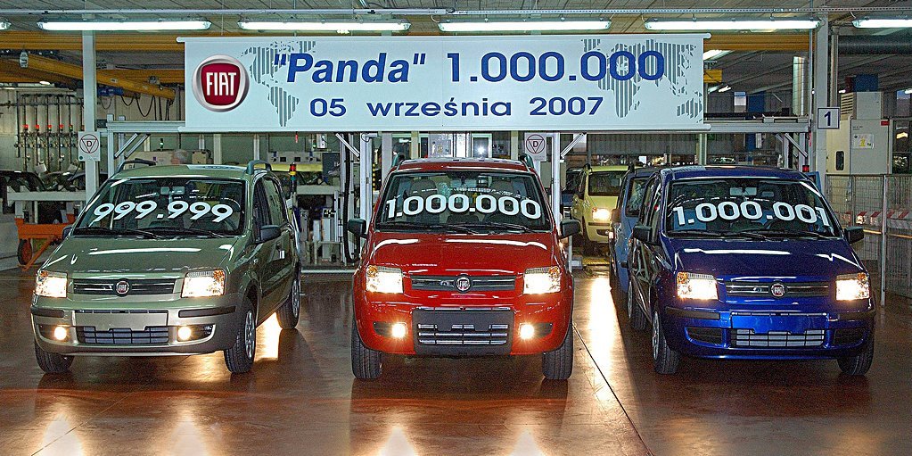 6 września z linii produkcyjnych Fiat Auto Poland w Tychach zjechał milionowy Fiat PANDA. Jubileuszowy samochód Fiat PANDA 1,2 , w wersji z napędem na cztery koła, w kolorze czerwonym / rosso sfrontato / przeznaczony jest na rynek włoski.