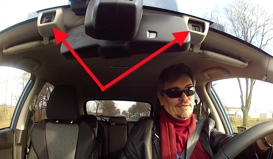 System oparty jest na optycznym dalmierzu stereoskopowym – dwóch równoległych kamerach umieszczonych pod lusterkiem wewnętrznym w całkiem sporym korpusie pomiędzy nimi znajduje się trzecia nisza dla sensorów deszczu i zmierzchu. Układ sprawia wrażenie nieco zbyt dużego i z pewnością doczeka się miniaturyzacji. Niestety widzi tylko obiekty oświetlone. Nie znalazłem nigdzie informacji jaka jest graniczna wartość światła, niezbędnego do prawidłowego funkcjonowania systemu, który jeszcze jedną słabość w stosunku do systemów korzystających z radarów fal milimetrowych, lub obu sprzężonych systemów – mocno ubrudzona lub oszroniona szyba w linii widzenia kamer stanowi barierę wyłączającą system, który ponadto w warunkach mgły, śnieżycy, ulewy nie stanowi już dodatkowych oczu kierowcy, jak system radarowy. Nasz samochód nie widzi też obiektów mieszczących się w martwym dla niego polu do 1 m. wysokości. Nie wyhamuje więc np przed psem.