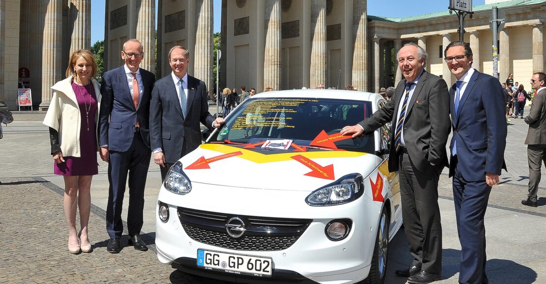 Dyrektor generalny Grupy Opel, dr Karl-Thomas Neumann, zaprezentował ten samochód przed Bramą Branderburską Johnowi B. Emersonowi, Ambasadorowi Stanów Zjednoczonych w Niemczech. Matthias Machnig, Sekretarz Stanu w Ministerstwie Gospodarki i Energii, dołączył do uczestników spotkania jako przedstawiciel niemieckiego rządu.