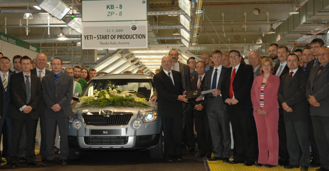 Zapoczątkowanie procesu produkcji seryjnej oznacza dla marki Škoda wprowadzenie na rynek zupełnie nowego modelu (w sumie piątego) i wejście do segmentu samochodów typu SUV. Pierwsze Yeti to samochód z napędem na cztery koła, o niebieskim kolorze (aqua), wyposażony w silnik 1.8 TSI.