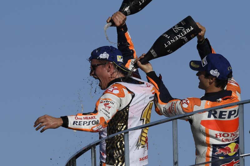 Finiszując na trzeciej pozycji w niedzielnym wyścigu o Grand Prix Walencji, Marc Marquez z ekipy Repsol Honda przypieczętował swój czwarty w karierze tytuł motocyklowego mistrza świata klasy MotoGP. Ostatnie zmagania sezonu wygrał jego zespołowy kolega, Dani Pedrosa, a Honda zapewniła sobie tzw. „potrójną koronę”; tytuły w klasyfikacji zawodników, zespołów i producentów.